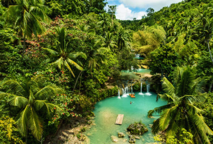 One of the most popular attractions on the island, Cambugahay Falls features tiered pools of cool turquoise water surrounded by jungle. Adventurous travelers can swing from ropes into the pools, while others can relax and float in the refreshing water.